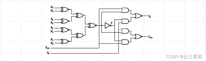 当8位中1的个数位奇数时,P = 1;当8位中1的个数位偶数时,P = 0;
