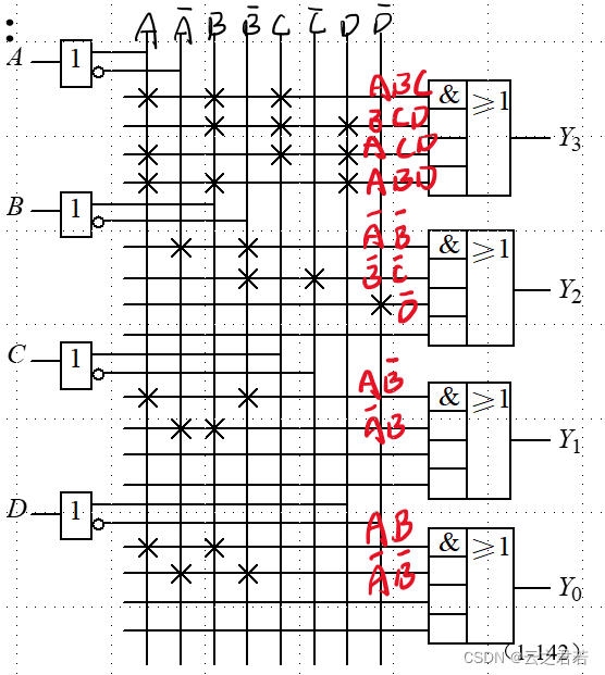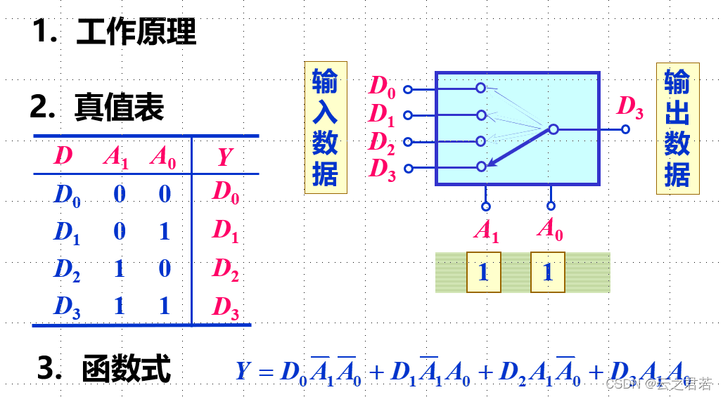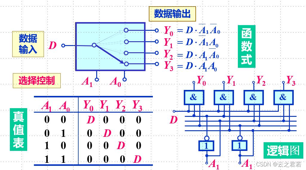 则有:Y = D0A非B非 + D1A非B + D2AB非 + D3AB;
