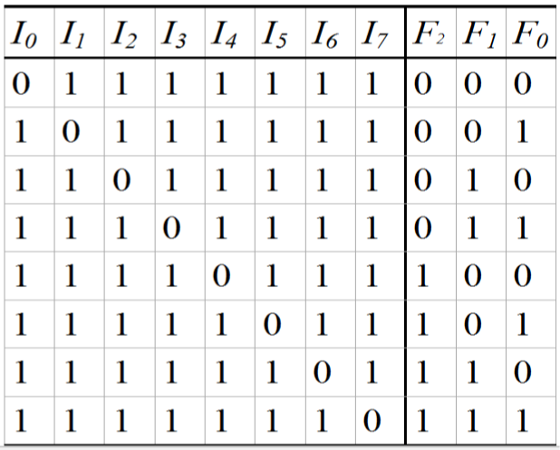 请对比 8 - 3编码器的真值表:
