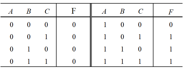 第一步,穷举法列出真值表: