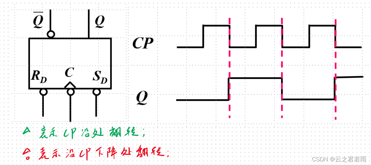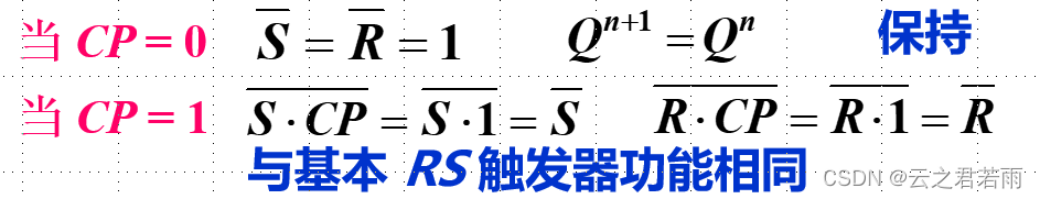 ——触发器的工作状态不仅受输入端 (R、S)控制,还受时钟脉冲(CP) 的控制。
