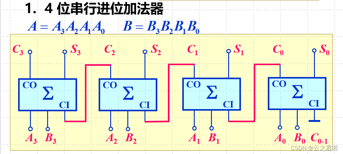 则,电路的总用时为4T; 注意,0位的C接地(不进位);