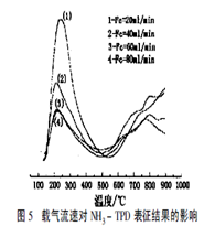 当Fc(载气流速)在20-60 ml/min 时, Tm(峰顶温度 )随Fc 发生了变化, 说明实验中存在着再吸附现象。而Fc在60-80 ml/min时, Tm不再随Fc 发生变化,加大Fc以消除再吸附现象。