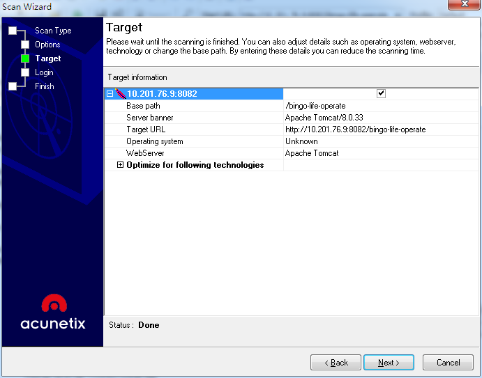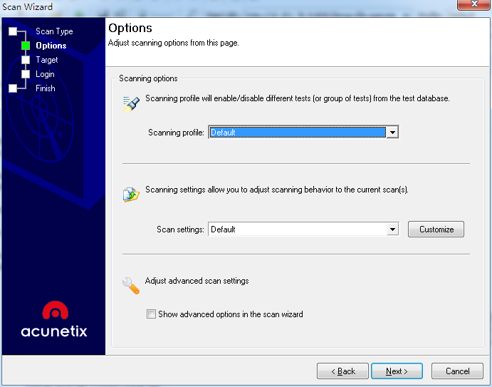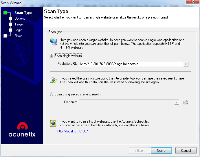 2.Specify Scanning Profile,Scan Setttings Template and Crawling Options