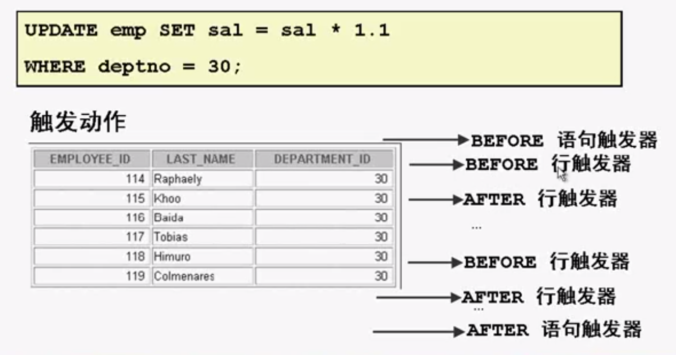 触发事件: INSERT, UPDATE或DELETE