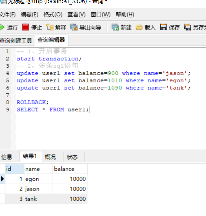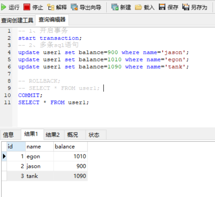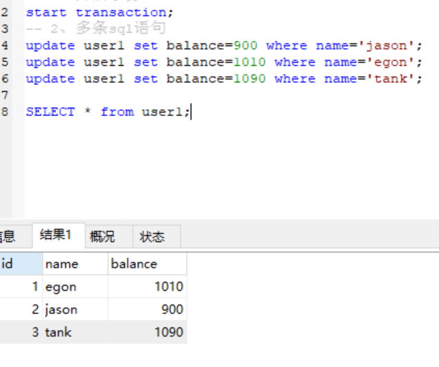 开启一个事务可以包含多条sql语句,这些sql语句要么同时成功,要么一个都别想成功