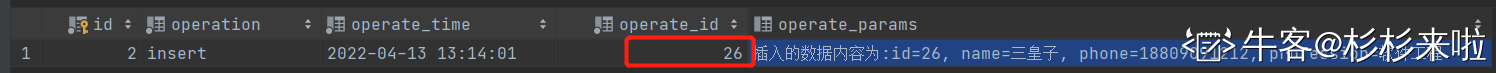 values (null, 'insert', now(), new.id, concat('插入的数据内容为:id=',