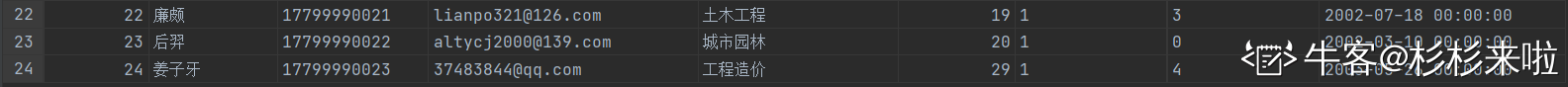 insert into tb_user(id, name, phone, email, profession, age, gender, status, createtime)