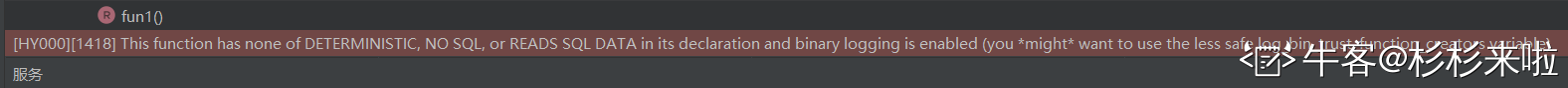 注:在mysql8.0版本中binlog默认是开启的,一旦开启了,mysql就要求在定义存储过程时,需要指定characteristic特性,否则就会报如下错误: