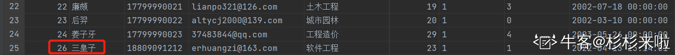 values (26,'三皇子','18809091212','erhuangzi@163.com','软件工程',23,'1','1',now());