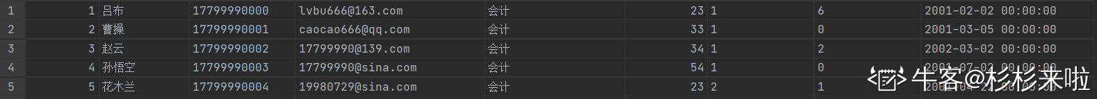 例1:为了保证数据库表的安全性,开发人员在操作tb_user表时,只能看到的用户的基本字段,屏蔽手机号和邮箱两个字段。
