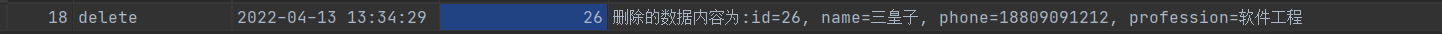 values (null, 'delete', now(), old.id, concat('删除的数据内容为:id=',