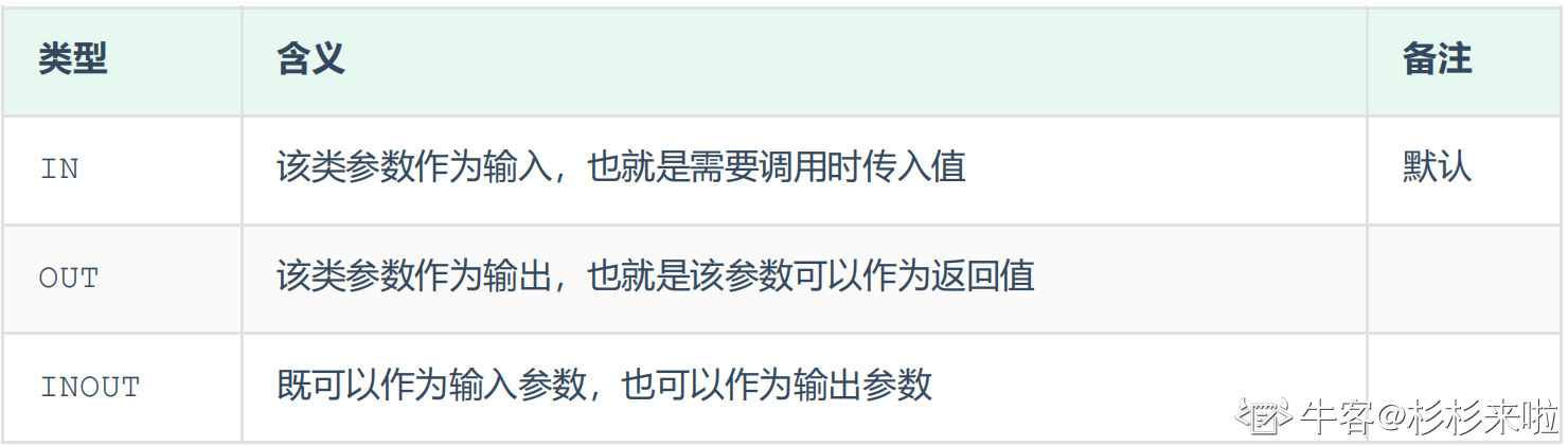 存储函数是有返回值的存储过程,存储函数的参数只能是IN类型的。
