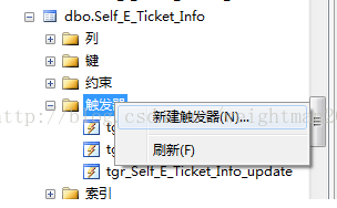 在manager studio找到要建触发器的表,在表下面的【触发器】文件夹上点右键,选择新建。如图: