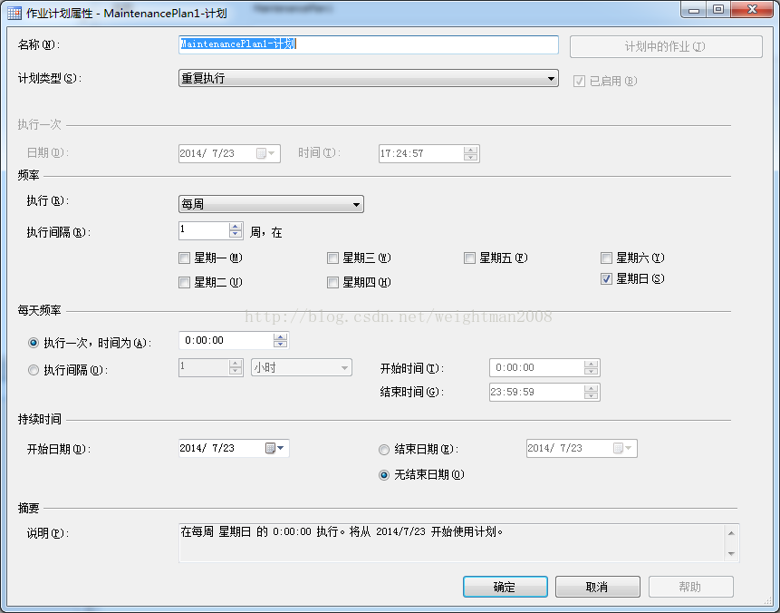 设定执行间隔和执行时间很简单,没什么可说的,设定好频率和执行的时间点即可,画面显示内容如下: