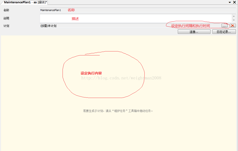 然后在【维护计划】上点右键,选择【新建维护计划】,画面内容如下: