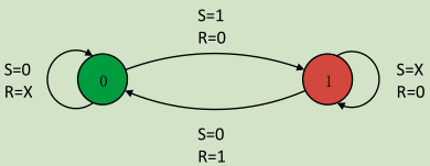 状态图:状态图是表示器件的状态的转换过程,RS锁存器的状态图如图所示: