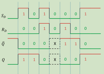 波形图:波形图是表示输入和输出的波形。RS锁存器的波形图如图所式: