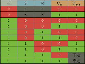 当C = 0时,无论S和R的值是什么,状态维持不变。
