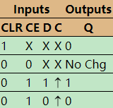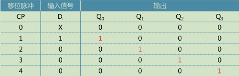 当给CP端一个脉冲,此时D0、D1、D2、D3的值就被存储在寄存器里了,知道CP端的下一个脉冲的上升沿到来时,存储的值才会改变。由四位D触发器组成的寄存器特性表如图所示: