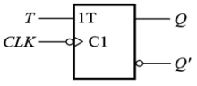 在时钟脉冲下,根据输入信号T取值的不同,凡是具有保持和翻转功能的电路,即当T = 0时能保持状态不变,T = 1时一定能翻转的电路,称为T触发器,逻辑符号如下图所示: