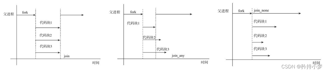 - Fork join:内部 begin end 块并行运行,直到所有线程运行完毕才会 进入下一个阶段。
