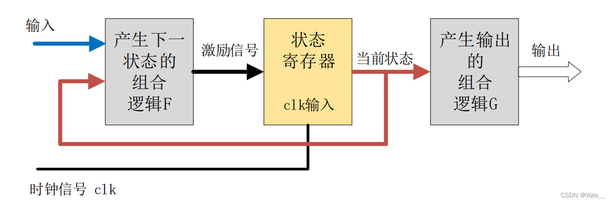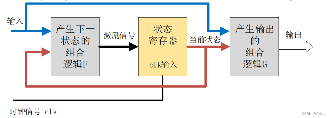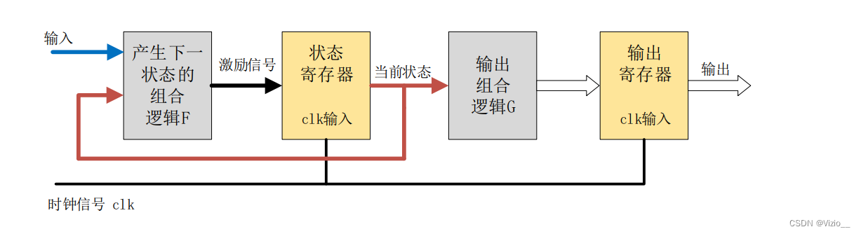 状态机采用时序逻辑输出的状态机模型如下图所示: