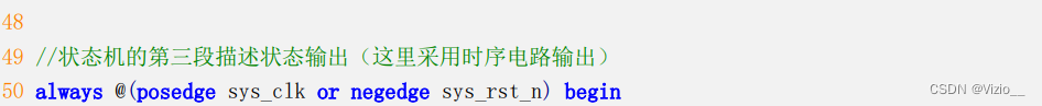 第三个 always 语句描述状态输出(可以用组合电路输出,也可以时序电路输出)。