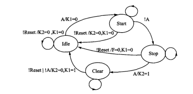 在设计状态机之前首先应该画出问题的状态转移图,状态转移图的例子如下所示: