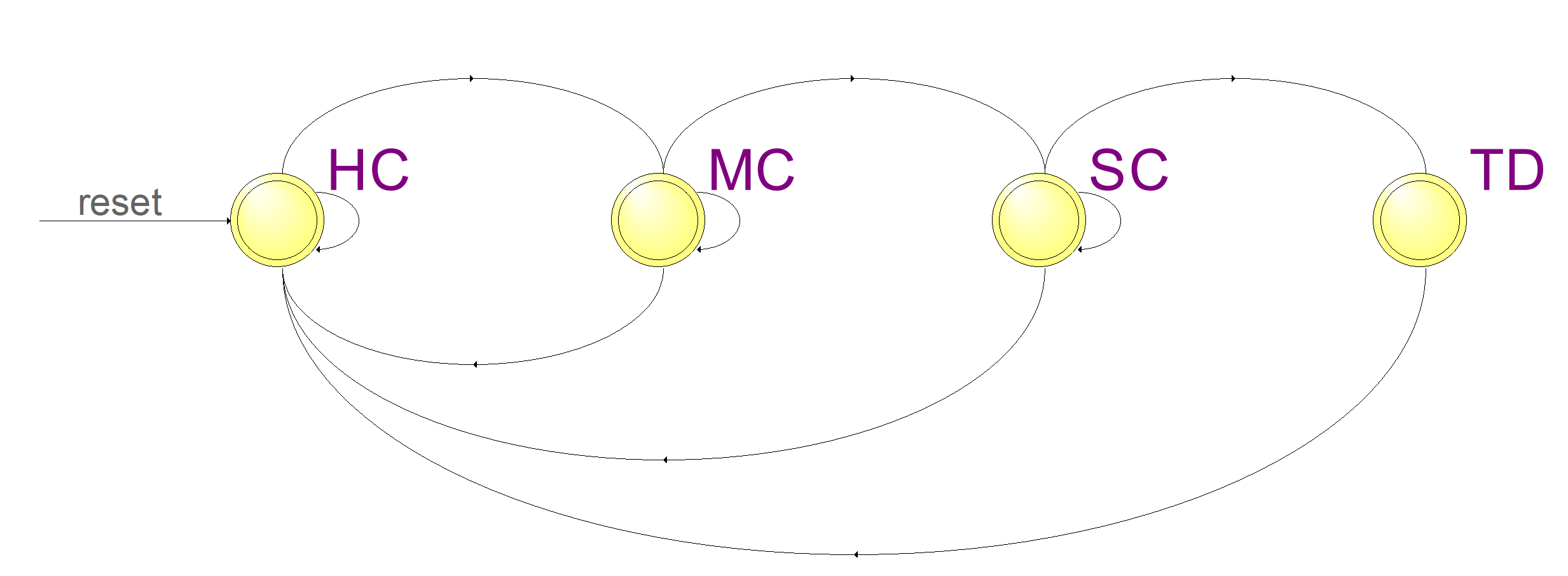 parameter HC=4'b0001, MC=4'b0010, SC=4'b0100, TD=4'b1000; // i.e. Hour Change, Minute Change, Second Change, Time set Done