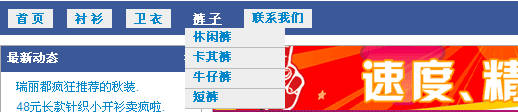 <li><a href="#">休闲裤</a></li>