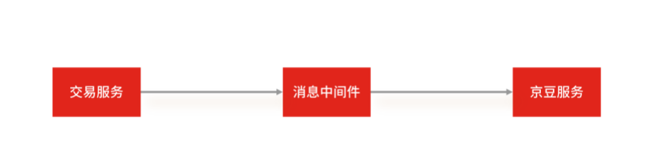 以京东系统为例,用户在购买商品时,通常会选择用京豆抵扣一部分的金额,在这个过程中,交易服务和京豆服务通过 MQ 消息队列进行通信。在下单时,交易服务发送“扣减账户 X 100 个京豆”的消息给 MQ 消息队列,而京豆服务则在消费端消费这条命令,实现真正的扣减操作
