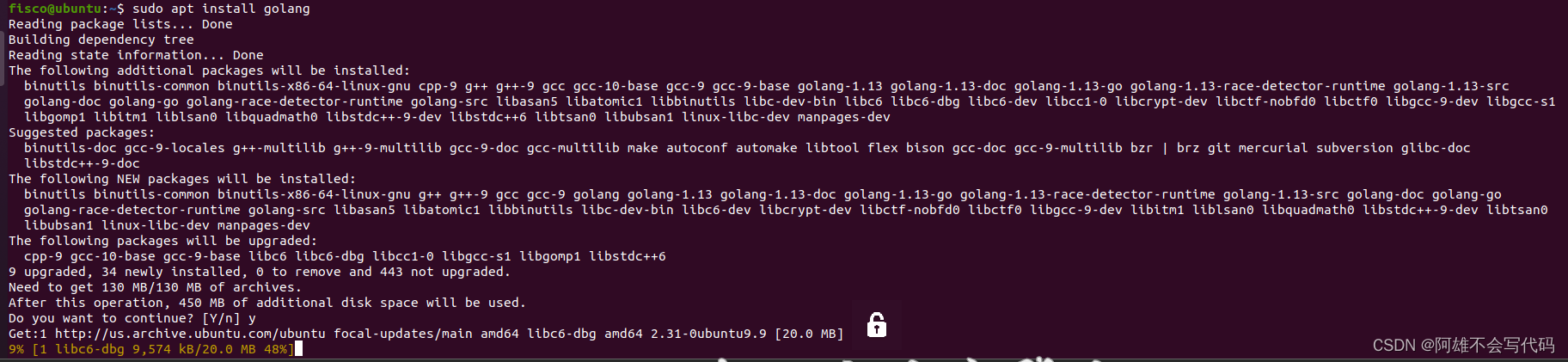 这里需要输入y去同意不然就输入参数 -y,如果大家觉得访问国外的站点下载过慢的话,可以看看我这篇文章不会换源?我教你