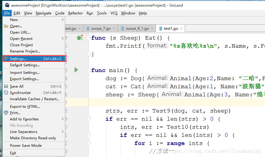 单击“File”------>单击“Settings”,如图11所示------>单击“GOROOT”