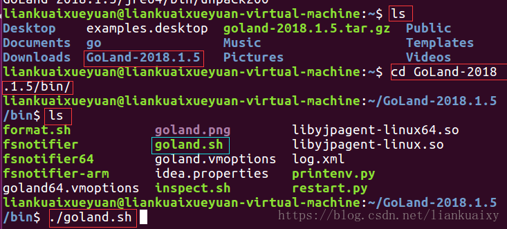 h. 运行GoLand,如图33所示,在终端输入:./goland.sh