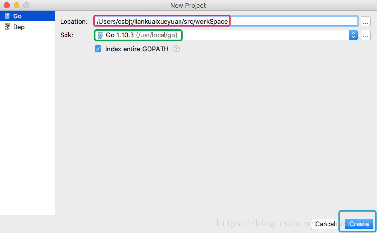 Sdk设置为:Go 1.10.3(/usr/local/go)