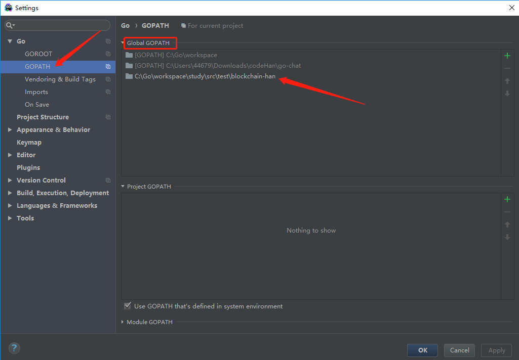 在这里需要注意的一点,就是,项目路径必须在GOPATH下。