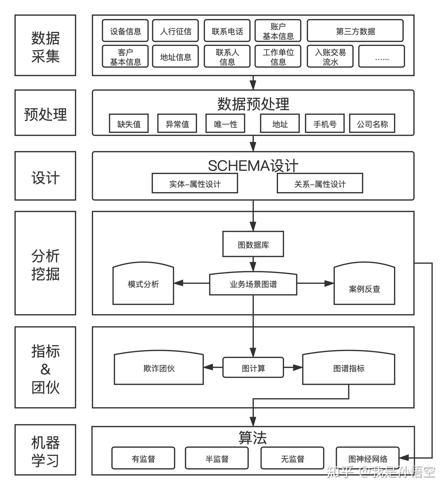 梳理数据->设计图谱->构建图谱->社区划分->社群定性->团伙输出