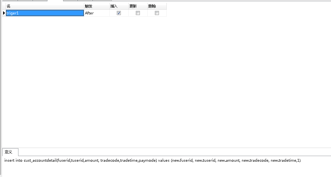 二、利用表的触发器功能,一旦发生交易,触发插入关联表的资金流水变动记录