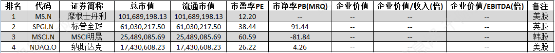 表 境外指数公司估值对比