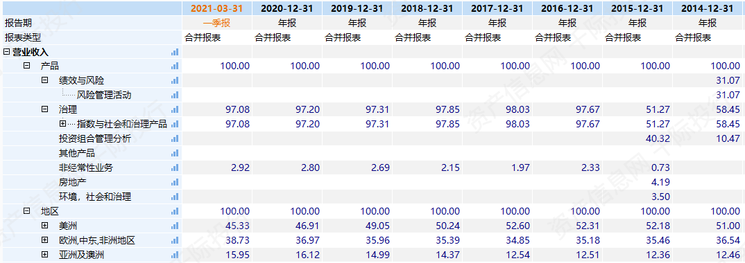 表 以MSCI明晟为例分析主营结构