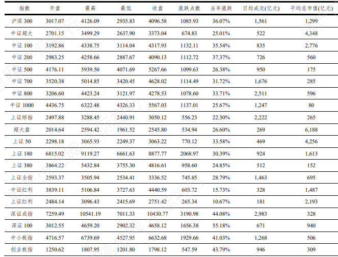 表 A 股市场主要指数年度数据