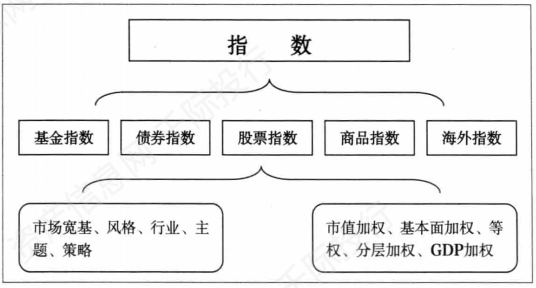 股票类指数包括众多细分类别,从股票资产范畴上分为:市场宽基指数、风格指数、行业指数、主题指数、策略指数等;从加权方法上分为:市值加权指数、基本面加权指数、等权重指数、分层加权指数等。