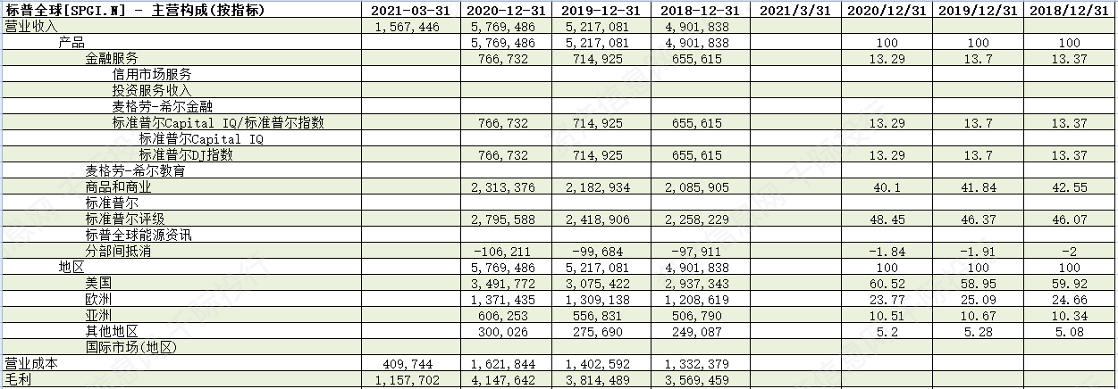表 以标普全球为例分析主营结构