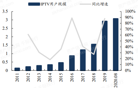 数据显示,我国OTT TV用户数由2016年1.29亿户增至2020年2.85亿户。2021年我国OTT TV用户数量可达3.27亿户。