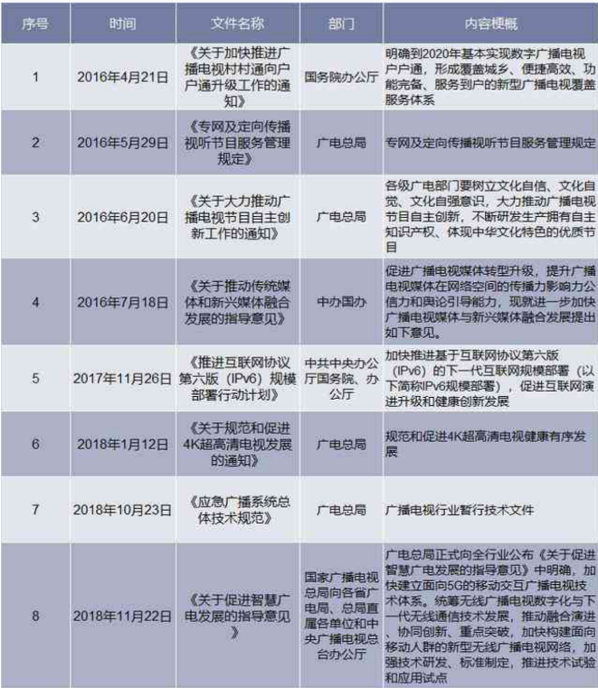 图 广电行业相关政策