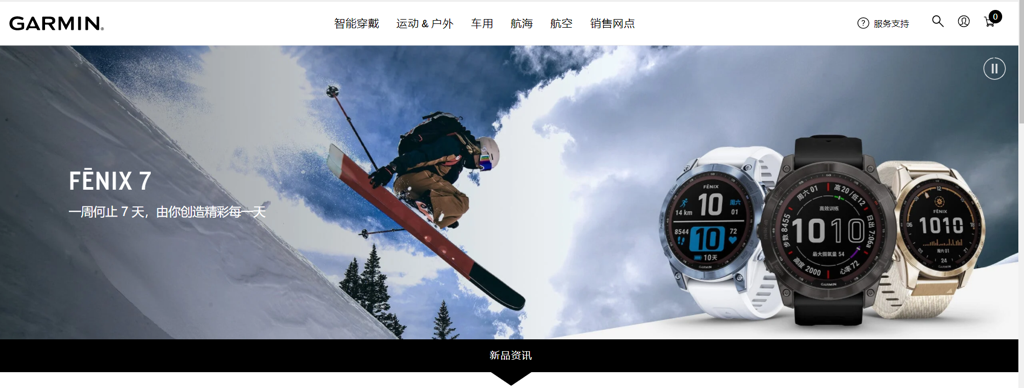 初期产品是一体式设计整合机舱导航设备,之后逐步将 GPS 技术扩增至穿戴式产品,衍生航空、航海及车用导航、户外及健身市场。随着体积的缩小、功能更新,延伸出了登山、游泳、跑步等各类型的 GPS 应用。例如为跑步设计的 Forerunner 系列、为户外运动设计的 Fēnix 系列、时尚的 vívo 系列等。除了可穿戴设备外,还可以在高尔夫、宠物运动、自行车等运动项目也有佳明设备的身影。