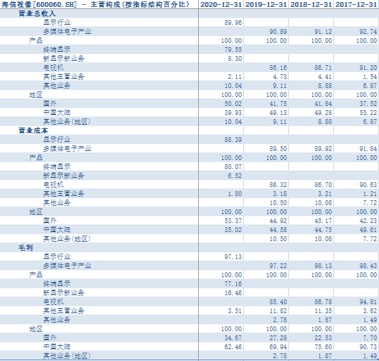 表 以海信视像为例的主营结构分析