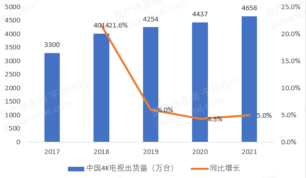 图 2017-2021年中国4K电视出货量