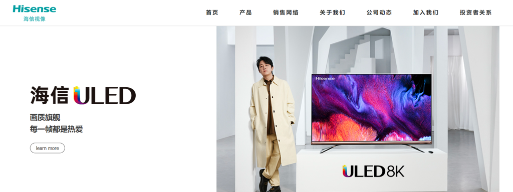 海信视像主要从事于显示及上下游产业链产品的研究、开发、生产与销售,生产基地遍布青岛、江门、贵阳、日本等全球多地,产品远销海内外100多个国家和地区。